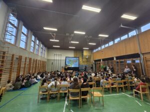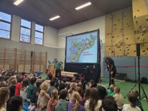 Das Mitmachkonzert lud zum Singen, Klatschen, Tanzen und Miträtseln ein und sorgte für eine ausgelassene Stimmung. Die Kinder machten begeistert mit und hatten sichtlich Freude an den lustigen Geschichten und Figuren. Dieses besondere Konzert war für alle ein unvergessliches Erlebnis und eine gelungene Abwechslung zum Schulalltag.