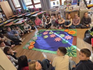 Die Projektleiterin Sabine, die uns schon seit Beginn begleitet, gestaltete auch diesmal den Workshop mit viel Engagement und Fachwissen. Mit Spielen, Experimenten und anschaulichen Beispielen lernten die Kinder, wie wichtig Mülltrennung, Recycling und Müllvermeidung sind.