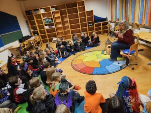 Beim Halloween-Lesefest der Klassen 3b und 3c erlebten die Kinder einen spannenden Nachmittag. Märchenerzählerin Sonja fesselte alle mit gruseligen Sagen und an der Bastelstation entstanden kreative Halloween-Dekorationen. Die Kinder lasen lustige Halloweengeschichten und arbeiteten in kleinen Geisterheftchen. Selbstverständlich waren alle Kinder verkleidet und geisterten durchs Schulhaus.