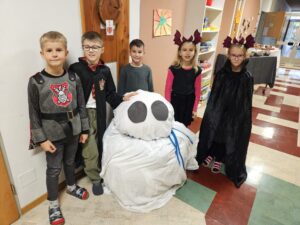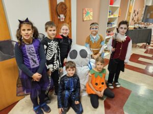 Zum krönenden Abschluss sangen wir den Eltern ein Halloween-Liedchen vor. Das Fest war ein großer Erfolg und bereitete allen viel Freude!