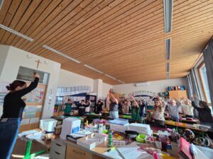 Heute hatten wir eine tolle Musikstunde mit der Musikpädagogin Eliana. Es wurde mit verschiedenen Instrumenten gearbeitet und die Kinder konnten ihr Rhythmusgefühl auf spielerische Weise trainieren. Gemeinsam übten wir zu dem bekannten, modernen Lied „Ordinary“ von Alex Warren, was allen besonders gut gefallen hat. Die Kinder hatten viel Spaß, machten begeistert mit und genossen die musikalische Stunde sehr.