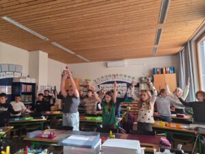 Heute hatten wir eine tolle Musikstunde mit der Musikpädagogin Eliana. Es wurde mit verschiedenen Instrumenten gearbeitet und die Kinder konnten ihr Rhythmusgefühl auf spielerische Weise trainieren. Gemeinsam übten wir zu dem bekannten, modernen Lied „Ordinary“ von Alex Warren, was allen besonders gut gefallen hat. Die Kinder hatten viel Spaß, machten begeistert mit und genossen die musikalische Stunde sehr.