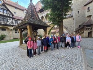 Die Klassen 4b und 4c besuchten am Mittwoch die Burg Kreuzenstein, die hoch über der Donau thront. Die Burg wurde im 19. Jahrhundert auf den Grundmauern einer mittelalterlichen Anlage neu erbaut und beeindruckt durch ihre Türme, Zinnen und alten Mauern. Bei der Führung sahen wir die Rüstkammer mit alten Waffen, die Burgküche mit riesigen Kupferkesseln und die Kapelle mit ihren bunten Glasfenstern. Ein weiterer Höhepunkt des Ausflugs war die Greifvogelschau.